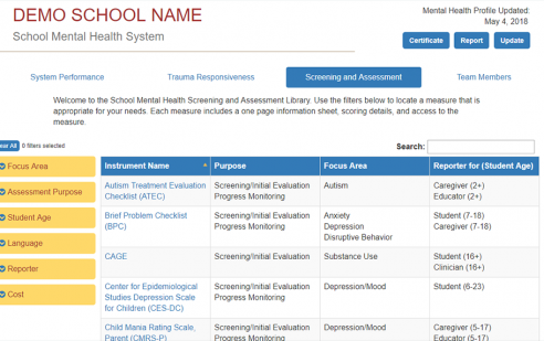 With funding from the U.S. Department of Health and Human Services, the Center for School Mental Health at the University of Maryland School of Medicine partnered with 3C Institute to develop a web-based portal that helps schools and districts assess and improve their comprehensive school mental health systems.