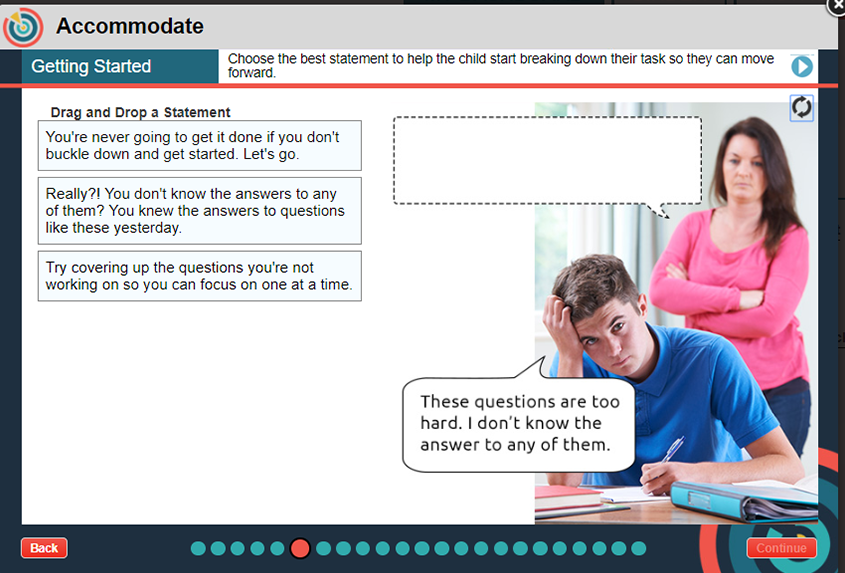 The Unstuck and On Target online course provides training to parents of children (ages 8-12) with Autism Spectrum Disorder to improve both executive functions and social skills. The team of Unstuck and On Target curriculum authors partnered with 3C to adapt their existing content and develop an online course to make Unstuck more accessible to parents with geographical, scheduling, and/or financial constraints. The course provides robust lessons and supports to help parents learn and practice a new way of understanding their child’s behavior, as well as ways to help their child respond flexibly, regulate their emotions, and manage and plan tasks.