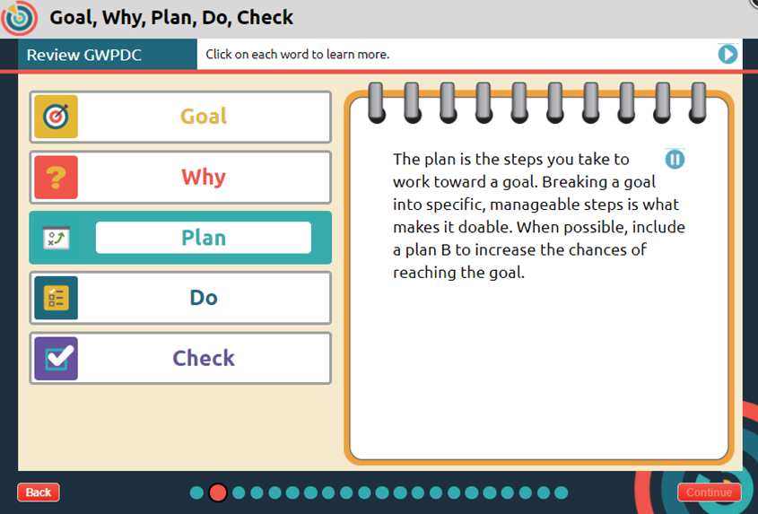 Built on a decade of research, our powerful, dynamic e-learning platform has been proven as effective as in-person instruction. DeLP implements the evidence-based cognitive theory of multimedia learning to engage diverse types of online learners. Learners gain skills and strategies to improve their own behavior, symptoms, and/or overall well-being.