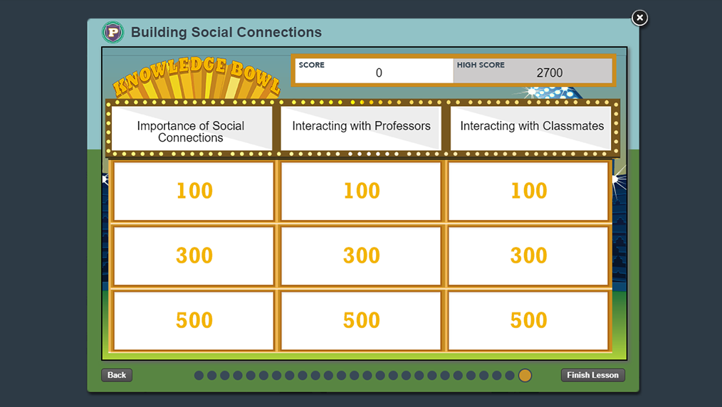 Mini-games support learning through shorter game play. Include mini-games in a course or game-based program to help users practice a specific skill or strategy or check their knowledge. Add them to an assessment to maintain engagement and reward students for progress.