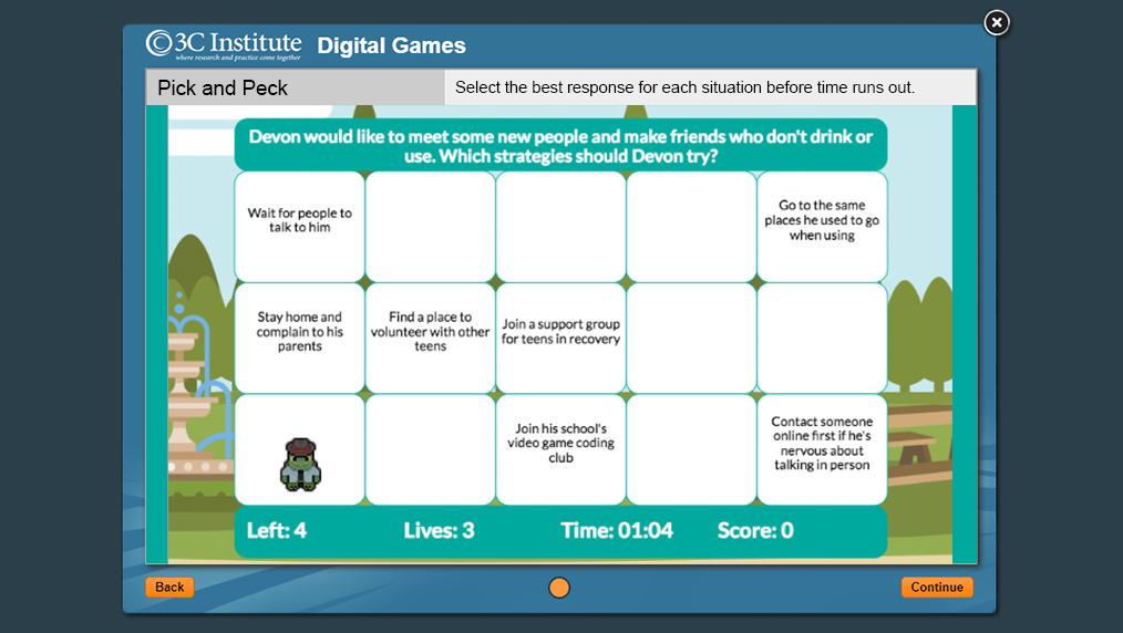 You can use a 3C mini-game as is, 3C can modify the text and graphics of an existing mini-game to support your learning objectives, or we can work with you to develop a new mini-game.